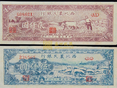 1947年西北農民銀行貳仟圓、伍仟圓