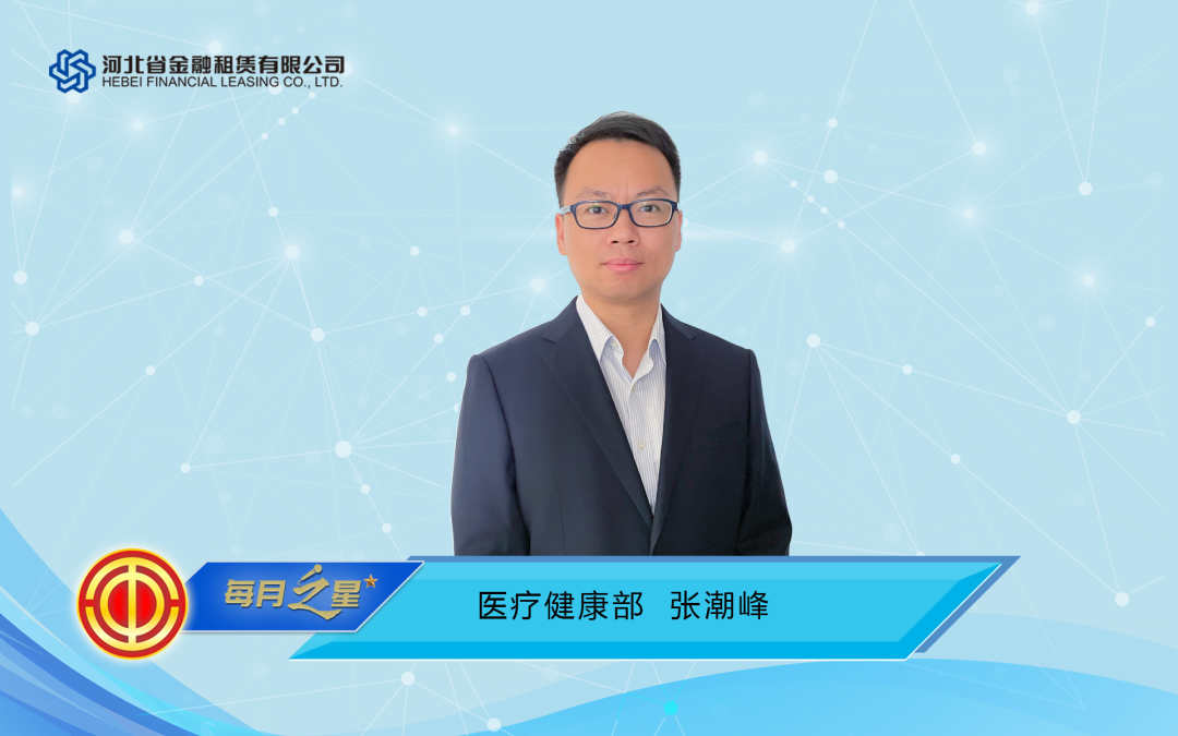 服務產業,責任在肩。五月份,張潮峰奔走徐州,蚌埠,杭州等華中南區域8個城市,拜訪醫療機構和同業客戶近40家,主動了解客戶需求,提供服務方案,這是這位“出差達人”的常規狀態。至5月份,張潮峰本年個人業績完成超過70%,所有已起租項目0逾期。